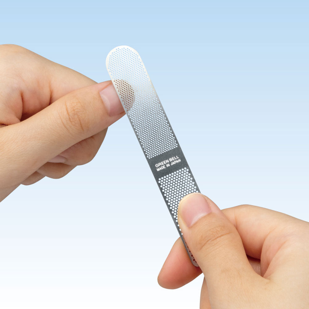 ● 오모테면의 둥근 구멍으로 손톱 끝을 단단히 깎고, 우라면의 육각 구멍으로 손톱의 표면을 가볍게 닦고 자연스러운 광택으로 완성합니다.