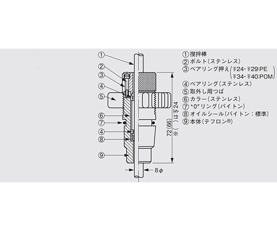 진공, 밀폐 상태에서의 교반에 반응 실험 등에 있어서의 진공 교반, 밀폐 교반에 유효한 공통 슬라이딩의 테플론 ®제 교반 씰입니다. 진공성, 내열성, 내약품성이 뛰어납니다. 교반봉에의 설치 위치는 자유롭게 조절할 수 있어 교환도 용이하게 실시할 수 있습니다. 0.13hPa(0.1mmHg) 정도까지 감압할 수 있어 회전 효율도 손상되지 않습니다. 슬라이딩: TS29 코드 번호: 121100