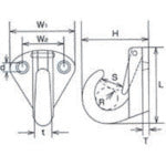 카탈로그 품번:WH-1 특징:●훅부에는, 분리 방지부입니다. 용도 : ● 벽면에 설치하고, 물건이나 체인 로프의 단말 쇠장식으로. 仕様:●使用荷重(kN):0.15●L(mm):38●S(mm):7●W1(mm):34●W2(mm):22●H(mm):25●R(mm):2.5●T(mm):3.2●d(mm):4.2●t(mm):5 材質/仕上:●材質:ステンレス(SUS304)●仕上げ:バレル研磨仕上げ