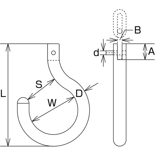 카탈로그 품번:B-2148 특징: ●체인을 세트하고 핀을 두드려 사용합니다. 용도 : ● 체인 터미널 하드웨어로. 사양:●적합 체인 지름(mm):2.5●사용 하중(kN):0.59●A(mm):11●B(mm):3●D(mm):8●L(mm):70●S(mm):23●W(mm):34●d(mm):2.5 재질/마무리: ●스테인리스(SUS30)