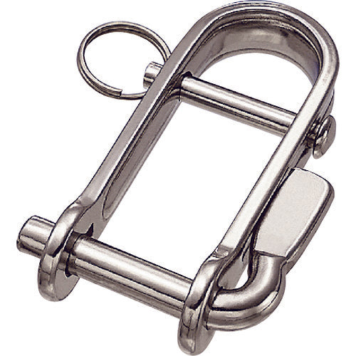 카탈로그 품번:B-1454 특징:●핀이 빠지지 않는 타입입니다. ● 핀 레버를 90도 기울이는 것만으로 매우 간단합니다. 용도 : ● 체인 · 와이어 · 로프 등의 연결이나 단말의 쇠장식 조인트에. 사양:●사용 하중(kN):1.18●B(mm):18●F(mm):10●D1(mm):6●D2(mm):4●L1(mm):49●L2(mm):32●d(mm):15●T(mm):3 재질/마무리: ●스테인리스(SUS304)