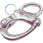 카탈로그 품번:YD-1 특징:●링을 당기면 훅이 빠집니다. 용도 : ● 체인, 와이어, 로프 등의 연결 쇠장식으로, 또한 단말의 쇠장식 조인트에. 사양:●B(mm):14●D(mm):4●L(mm):55●W(mm):37●d(mm):10 ●사용 하중(kN):1.47 재질/마무리: ●재질:스테인리스(SUS304) ●마무리: 배럴 연마 마무리