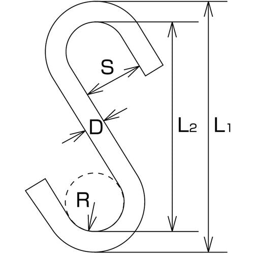 카탈로그 품번:B-1362 특징:●S의 입이 거의 평행하게 열려 있으므로, 폭이 있는 개소에 걸기 쉽습니다. ● 개구부가 크기 때문에 파이프 등에 설치할 수 있습니다. 용도: ●공구・기구 등의 일반 상품의 수납의 매달아 쇠장식으로서. 사양:●사용하중(kN):0.20●D(mm):5●L1(mm):100●L2(mm):90●S(mm):31●R(mm):15 재질/마무리:●스테인리스(SUS304)