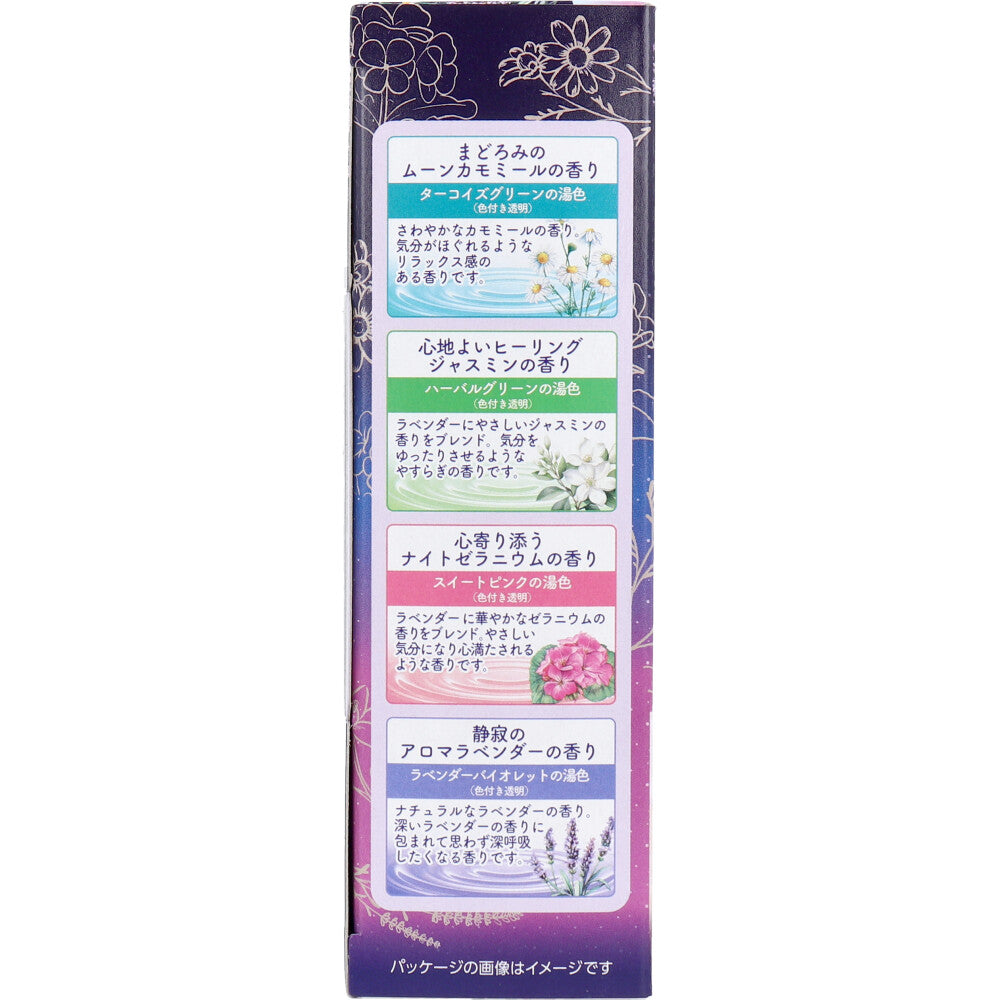 기분에 맞게 선택할 수 있는 4종 아소트의 아로마 탄산탕. 후라노산 라벤더 향기 성분 배합의, 좋은 밤 전에 기분 좋은 시간을 보내는 향기.