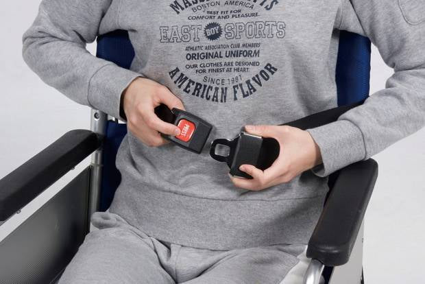 ○휠체어로 좌위의 유지가 하기 어려운 쪽, 낙하해 버리는 분을 위한 안전 벨트입니다. 등 시트의 뒷면에 벨트를 통해 배 앞에서 걸어 주시는 것만의 간단한 사양. 스스로도 간편하게 분리나 설치를 할 수 있는, 종래의 시트 벨트보다 견고하고 안심인 버클입니다.