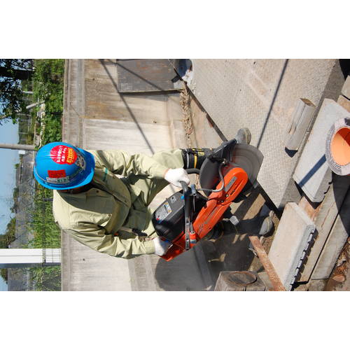 카탈로그 품번:JJ-12 특징:●철근 콘크리트, 고강도 콘크리트 절단에도 대응합니다. ●핸드 커터, 엔진식, 전동식 대응 용도:●철근 콘크리트, 파일, 콘크리트 2차 제품 전반. 사양:●외경(mm):305 ●날 두께(mm):2.8 ●홀 직경(mm):30.5 ●팁 높이(mm):7 ●최고 사용 회전수(rpm):6300 ●최고 사용 회전수(min[[의 -1승]]):6300 지립 등