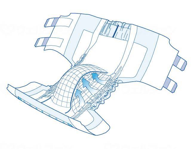 ○ 세계 최초의 입체 흡수 구조의 테이프 타입 종이 기저귀입니다. 테이프 타입 유저가 요구하는 「몰레 방지」와 「맞추기 쉬움」의 기능을 높은 레벨로 채웁니다.