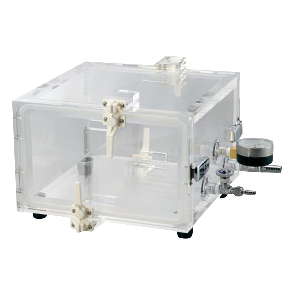 밀폐성이 높은 실리콘 패킹을 사용하고 있습니다. 재질:본체/PMMA(아크릴 수지)(판두께:25mm), 밸브·진공계 장착 시트/PC(폴리카보네이트)
