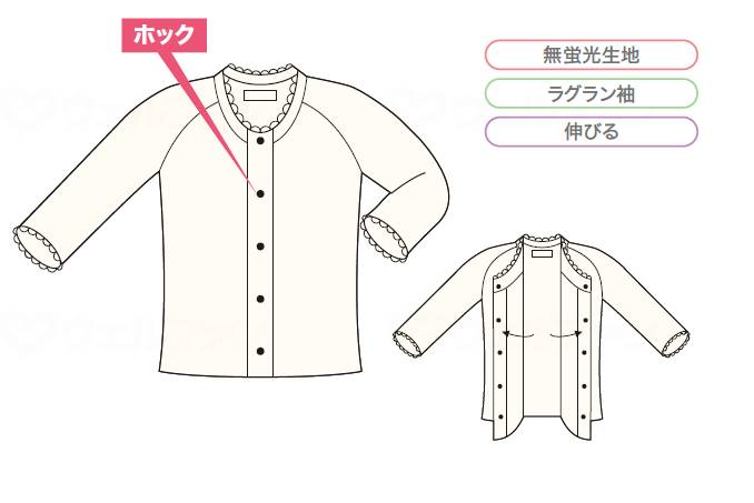 누르는 것만으로 머무는 훅식의 버튼입니다. 플라스틱 소재이므로 피부를 만져도 차갑지 않습니다. 내구성이 강하고 세탁을 반복해도 변형되지 않습니다.