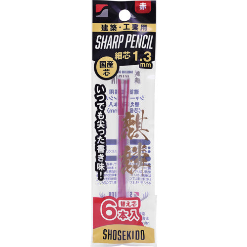 쇼조도 麒麟 건축용 샤프 펜슬 1.3 교체 심 6개 입 빨강 140-R6 1 PK