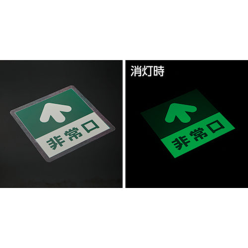 녹색 십자 축광식 피난 유도 스티커 표지 ↑비상구 축광 A 300×300mm 엔비 바닥용 069001 1장