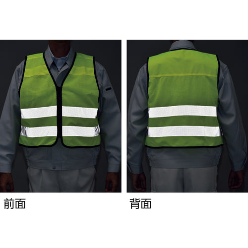 녹색 십자 고시인성 안전 반사 베스트(메쉬 천 타입) 형광 황지/고휘도 백반사 프리 사이즈 클래스 1 적합품 메쉬 베스트-KY 238221 1 착용