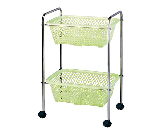 바구니 색: 녹색 폭×안길이×높이(mm):515×350×750 재질:본체/스틸(크롬 도금), 바구니(중)/PP(폴리프로필렌) 캐스터:φ35mm(스토퍼 없음) 내하중:약 2~3kg(균등 하중) 부속품: 바구니(중) 2개 조립식(요구 공구) 형번:DP-25C(2단)