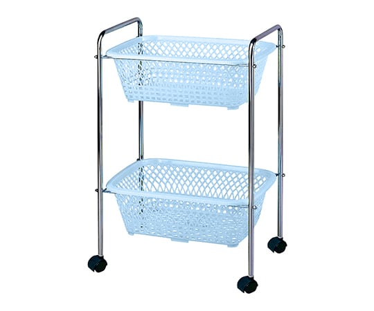 바구니 색: 블루 폭×안길이×높이(mm):515×350×750 재질:본체/스틸(크롬 도금), 바구니(중)/PP(폴리프로필렌) 캐스터:φ35mm(스토퍼 없음) 내하중:약 2~3kg(균등 하중) 부속품: 바구니(중) 2개 조립식(요구 공구) 형번:DP-25C(2단)