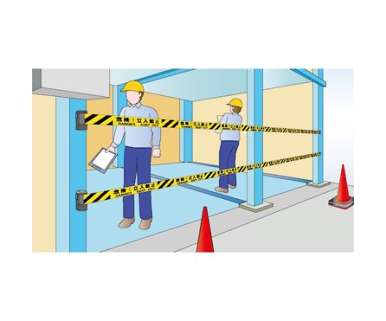 공장, 변전소, 주차장, 빌딩 설비의 점검·수리 및 청소 등에서의 출입 제한, 구분. 표시 내용 : 작업 중 들어가지 마십시오