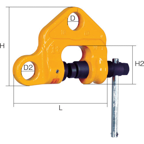카탈로그 품번:WF-01000 특징:●원형 더블 캠락 방식이므로, 보다 강한 조임력이 발생하여 안전한 작업을 할 수 있습니다. ● 2개의 걸림 구멍으로 전방향 작업을 할 수 있습니다. ●I빔등의 기울기가 있는 매달아에도 사용할 수 있습니다. ● 업계 일경량의 나사 클램프입니다. 용도 : ● 리프팅, 운반 작업용. ● 전기 체인 블록, 호이스트, 도르래 등의 매달려 용 조각. ●부철판이나 구조물의 끌어당기기 작업 등. 사양:●기본 사용 하중(t):1●클램프 범위(mm):3~40●치수(mm)D:30●치수(mm)D2:30●치수(mm)H:132●치수(mm)H2:65●치수(mm)L:172●높이(mm):132●폭(mm):172