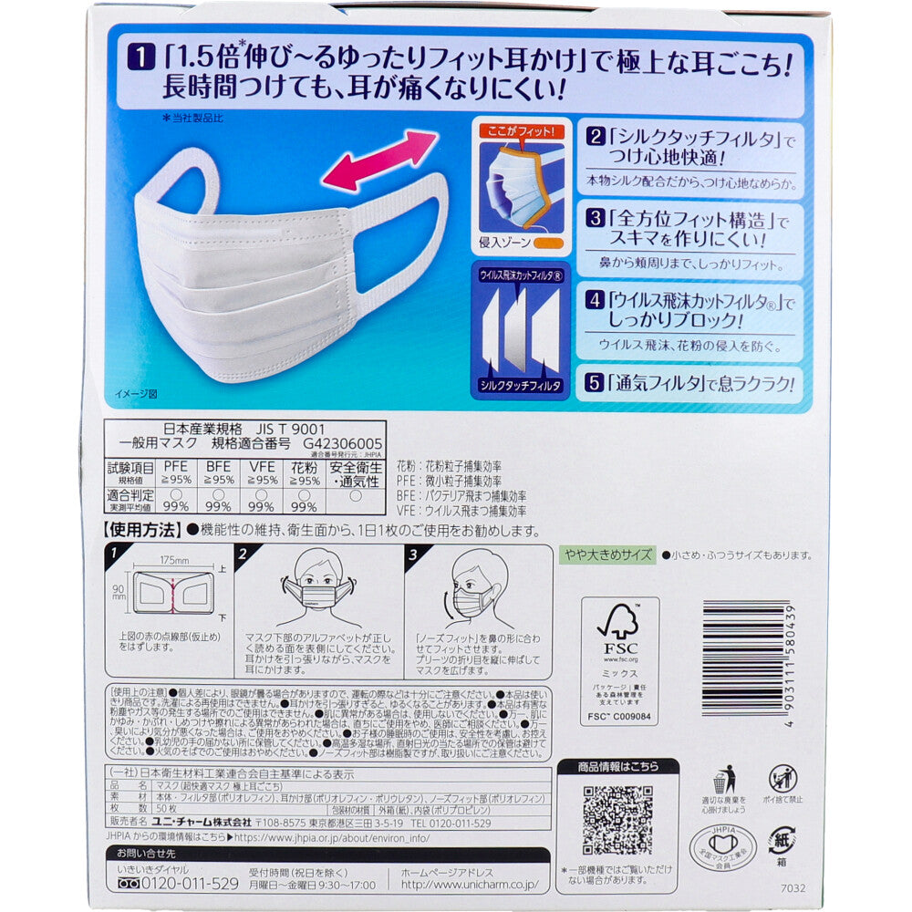 슈퍼 쾌적한 마스크 극상 귀 곳곳 감기・꽃가루용 화이트 약간 큰 사이즈 50장입 1개