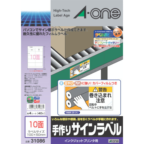 3M 에이원 옥외용 사인 라벨(잉크젯) 광택 필름·백 10면 4장 31086 1 PK