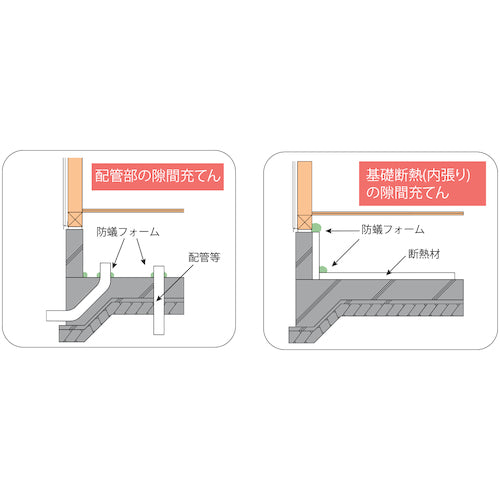 카탈로그 품번:IBF 특징: ●방개 성분을 배합한 우레탄 폼입니다. ●목조 주택의 단열·기밀·방개를 이것 1개로 실현합니다. ●부속의 노즐과 별매의 건의 2 사양으로 사용 가능합니다. ●논 프론, 비 VOC의 단열재로 오존 파괴 계수 제로입니다. ●JAIAF☆☆☆☆ 규격품입니다. 용도: ● 단열재의 간극 처리나 배관 구멍의 되메우기에. 사양:●색:그린●발포 체적(L):15~20 ●용량(ml):435 ●용량(g):505 ●전체 높이(mm):220 ●시공 기준:직경 2cm로 약 45m~약 60m 판매의 건의 2 사양으로 사용 가능 재질/마무리: ●우레탄 수지 세트 내용/부속품: ●충전용 노즐 1개