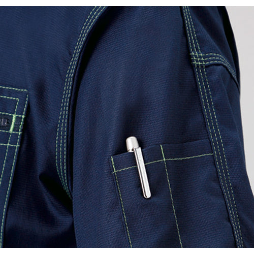카탈로그 품번:5910-001-LL 특징:●흡한속건 천을 채용하고 있습니다. ●특수 커팅 「무빙 컷」으로 팔의 올려 내림이 부드럽습니다. ●대전 방지 소재 사용입니다. 용도 : ● 자동차 정비 등에. ●작업 전반, 기타. 사양:●색:네이비-불-●사이즈:LL●신장(cm):172~177●가슴둘레(cm):126●웨스트(cm):106 주의: ●질량은 「LL」의 참고값입니다.