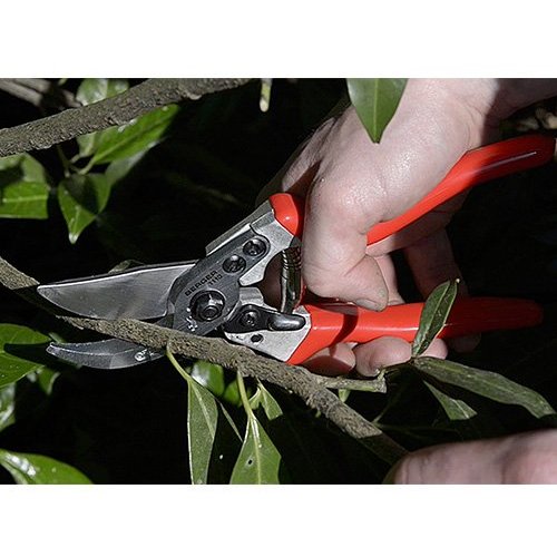 카탈로그 품번:1110 특징:●인체공학 핸들은 갖기 쉽고, 단조 알루미늄제로 경량이면서 내구성이 높습니다. ●날의 내면의 홈이 잘라 떨어짐을 좋게 해, 정확한 컷을 연속해 행할 수 있습니다. 용도: ● 식물의 전정 작업과 채과 작업에. 사양 : ● 절단 능력 (mm) : 20 ● 날 길이 (mm) : 50 ● 전장 (mm) : 215 ● 쇼크 업소버 부착 ● 주유 홈 부착 재질 / 마무리 : ● 칼날 : 고탄소 칼날 단조강 (크롬 코팅) ● 그립 : 알루미늄