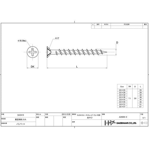 DAIDOHANT 스테인레스 (SUS410) 코스 스레드 플렉스 3.8X57 (300 개) 00045847 1 상자