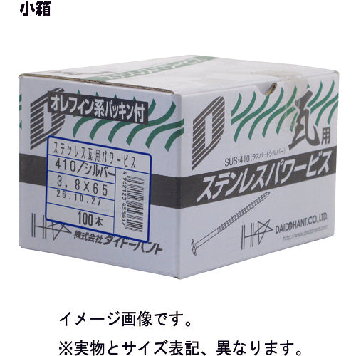 DAIDOHANT 기와용 SUS410 파워 나사 3.8x65(실버) 올레핀 P 부착(100개) 00045361 1 상자