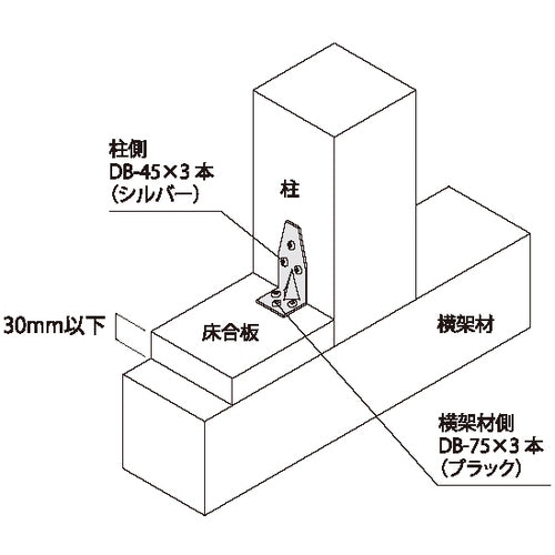 카탈로그 품번:10177179 특징:●고내식 용융 아연 도금 강판(ZAM)을 사용하고 있습니다. ● 두께 30mm 이하의 바닥 합판에 대응합니다. 용도: ● 기둥과 가로재의 접합에. 사양:●타입:바닥 합판 ●고시 1460호는 ●단기 기준 내력(kN):6.7●N값 1.2 이하 재질/마무리:●ZAM●표면 처리:고내식 용융 도금 강판 세트 내용/부속품:●전용 나사 DB-45 3개/조・전용 나사