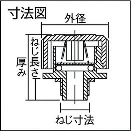 카탈로그 품번:VL-3/4H 특징:●탱크가 설정압력에 도달하면 자동으로 밸브가 열리고 고압의 공기를 배출합니다. ● 외부 공기를 흡기하지 않습니다. ●배기 캡 ●압축공기의 배출이 필요하게 되는 스피드 리듀서 서버 리에이터, 컴프레서 등에 이용해 주십시오. 사양:●외경(mm):42●두께(mm):37●내열 온도(℃):120℃●나사 길이(mm):11.5●나사 치수:G3/4●나사식식 ●설정압력:100hPa , 피하십시오. ●가솔린, 알코올의 사용은 할 수 없습니다.