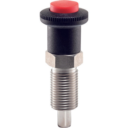 카탈로그 품번:22122.0115 특징:● 노브를 당길 때는 버튼을 누른 상태에서 조작합니다. ●오조작을 방지할 수 있습니다. 용도 : ● 인덱스, 슬라이드기구 등의 잠금, 위치 결정에. 사양:●하중(N):8.5 - 26●나사 치수:M16×1.5●전체 길이(mm):70●핀 지름(mm):8●핀 길이(mm):8●외경(mm):28●스트로크(mm):8●내열 온도(℃):80 재질/마무리: ●본체: S000 ● 핀:스테인리스강 1.4305(SUS303 상당)(니켈 도금) ●노브:열가소성 수지 PA 6(블랙 그레이, 매트) 주의:●록 너트는 별매입니다.