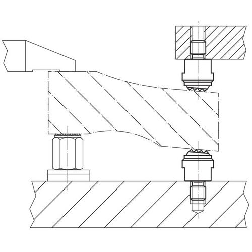 카탈로그 품번:22730.0312 특징:●최대 9도까지 워크의 면이 되어 요동합니다. ● 패드의 반전 방지 부착입니다. 용도 : ● 스토퍼, 위치 결정, 지원, 스러스트 패드 등. ●고정 지그의 워크와의 접촉 부품에. 사양:●높이(mm):21●볼트 지름(mm):M6 레이션면 직경(mm):7.2 ●육각폭(mm):13 ●요동 패드 수나사 세레이션 부착 재질/마무리: ●본체: 열처리 강, 열처리, 인산염 처리 ●볼: 베어링 강, 담금질, 표면 처리 없음