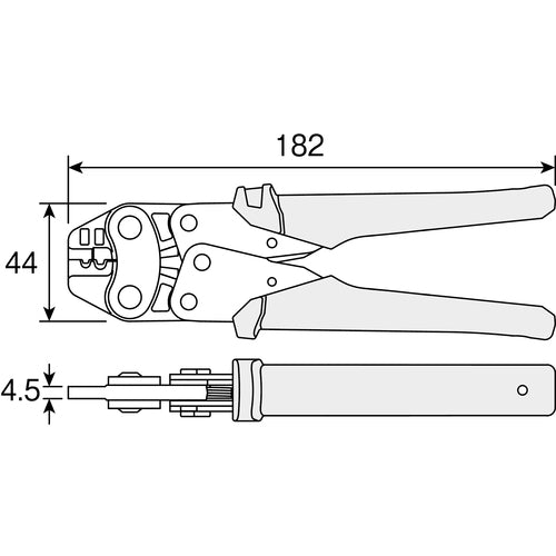 카탈로그 품번:P-732 특징:●토글 기구에 의해, 단위 스트로크당의 소요 악력을 억제해, 상냥한 조작성을 실현했습니다. ●단자를 완전히 압착할 때까지 핸들이 돌아오지 않는 성형 확인 기구 부착입니다. ● 핸들의 최대 개방 폭이 110mm로 컴팩트하므로 한 손 조작이 가능합니다. 용도: ●알몸 압착 단자·P. B형 알몸 압착 슬리브의 압착에. 사양:●전장(mm):182●압착 단자([[MM2]])알몸 단자용:1.25, 2●JIS C 9711 적합품 재질/마무리:●다이스부:합금강