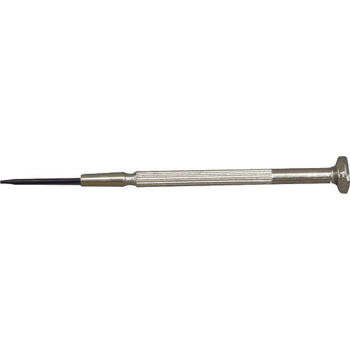 카탈로그 품번:D-20-14 특징:●작업성이 좋은 머리부분 회전식으로, 작은 나사의 조속한 회전에 최적입니다. 사양:●날끝:[[-]]1.2×0.32 ●전체 길이(mm):83 ●무늬 직경(mm):3.9 ●축경(mm):1.2