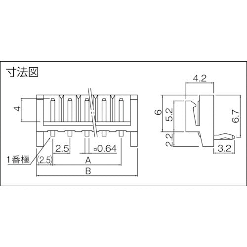 카탈로그 품번:S3B-EH 특징:●박형 설계로 높은 접촉 신뢰성을 실현했습니다. ●오삽입 방지 기구가 있습니다. 용도: ● 기기내 배선용. ● 전선 대 기판 접속용 2.5mm 피치. 사양:●극수:3●적합 전선범위:AWG#30~#22●형상:사이드형 ●내전압(V):AC800/1분간 ●정격전류:3A●A(mm):5●B(mm):10●절연저항:1000MΩ 이상 ●정격전압(V):250V● 사용온도범위:-25℃〜 UL94V-0) ● 황동·구리 하지 부착 주석 도금(리플로우 처리)