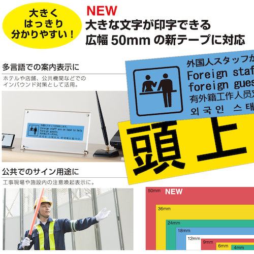 카탈로그 품번:SR-R7900P-SET 특징:●큰 문자를 인쇄할 수 있는 광폭 50mm의 새로운 테이프에 대응하고 있습니다. ● 대용량 45m 권의 EX 롱 테이프에 대응하고 있습니다. ● 고화질 300dpi의 대형 헤드로 인쇄가 깨끗합니다. ● 하프 컷 기능이있는 오토 커터 탑재입니다. ● 여백이 적기 때문에 라벨을 많이 만들 수 있습니다. ● 효율적인 인쇄가 가능한 고속 인쇄입니다. ● 장면에 따라 선택할 수있는 연결 방법입니다. ● 스스로 커터 치아의 교환이 가능합니다. 용도: ●공사 현장이나 시설내의 주의 환기 표시에. ●대량의 부품, 장치품의 입출고 관리에. ●호텔이나 점포, 공공 기관에서의 주의 표기나 다언어로의 표시에. 사양:●인쇄밀도(dpi):300×566 ●폭(mm):193●깊이(mm):198●높이(mm):144●적합 테이프폭(mm):4・6・9・12・18・24・36・50 ●전원:부속 AC어댑터 /n)●전원(V):부속 AC 어댑터 인터페이스:USB 접속・유선 LAN 접속(10BASE-T/100BASE-TX)・무선 LAN(IEEE802.11b/g/n) ●헤드 구성:서멀 헤드(300dpi/566dot), 열전사 PRO 방식 ●전원:부속 AC 어댑터 인터페이스:USB 접속・유선 LAN 접속(10BASE-T/100BASE-TX)・무선 LAN(IEEE802.11b/g/n) ●테이프 폭:테프라 PRO 테이프 카트리지 4・6・9・12・18・24・36・50mm(EX롱 카트리지 대응) /부속품:●동봉품:시용 PRO 테이프 카트리지, 헤드 클리닝 테이프(SR50C), EX 롱 카트리지 고정용 어태치먼트, AC 어댑터(AS2437), USB 케이블(AB 타입), 전사 스틱, 취급 설명서(보증서 첨부), SS12K-EX×1개