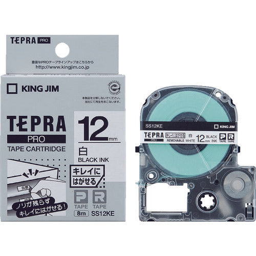 KING JIM 【순정】 “테프라” PRO 테이프 12 mm 깨끗하게 벗기는 라벨/흰색 라벨/흑문자 길이 8 m SS12KE 1개