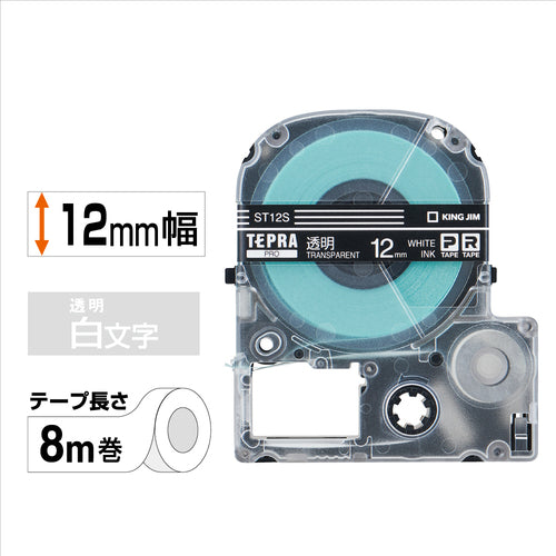 KING JIM 【순정】 “테프라” PRO 테이프 12 mm 투명 라벨/백문자 길이 8 m ST12S 1개