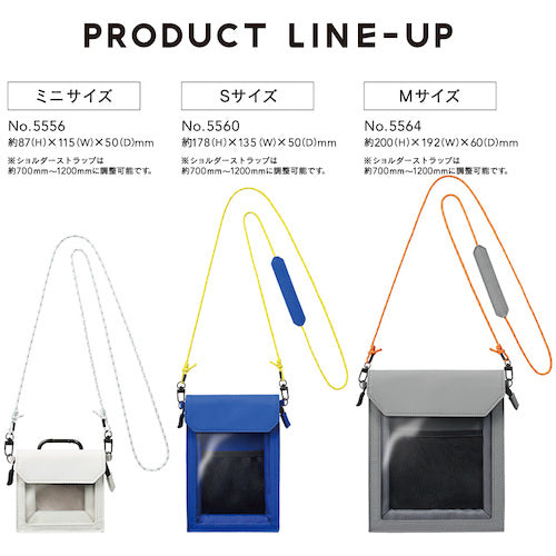 카탈로그 품번:5564-GY 특징:●“조금 거기까지”의 외출에 최적인 미니 가방입니다. ●심재들이로 형 무너지기 어렵고, 개구부는 면 패스너 부착의 플랩과 소품의 탈락을 막는 패스너가 붙어 있어, 사용의 용이성과 휴대성을 겸비하고 있습니다. ● 또한 길이 조정이 가능한 숄더 스트랩이 부속되어 있어 떼어내는 것으로 가방 인백으로서도 사용할 수 있습니다. ●투명 포켓으로 내용을 한눈에 알 수 있어, 스마트폰을 안에 넣은 채로 화면 조작도 가능합니다. ● 숄더 스트랩은 약 700mm ~ 1200mm로 조정 가능합니다. 사양:●색:그레이●폭(mm):192●안길이(mm):60●높이(mm):200●내하중(kg):약 1.7●숄더 스트랩 길이(mm):700~1200●내하중 약 1.7kg 주의:●숄더 스트랩을 목이나 팔 등 신체에 감아 ●본제품에 수납한 것의 파손이나 고장 등, 당사는 일절 그 책임을 지지 않습니다.
