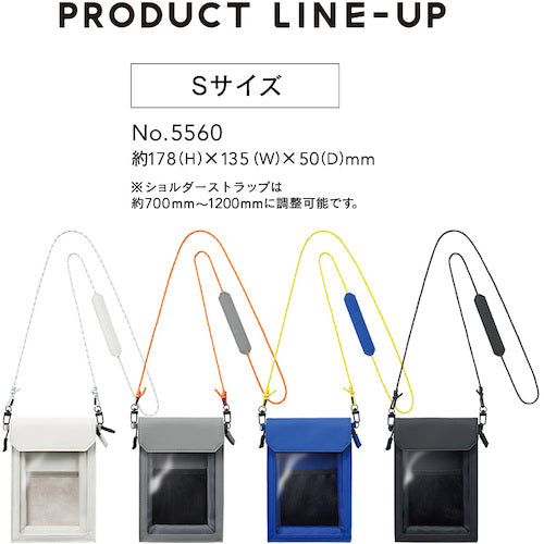 카탈로그 품번:5560-BK 특징:●“조금 거기까지”의 외출에 최적인 미니 가방입니다. ●심재들이로 형 무너지기 어렵고, 개구부는 면 패스너 부착의 플랩과 소품의 탈락을 막는 패스너가 붙어 있어, 사용의 용이성과 휴대성을 겸비하고 있습니다. ● 또한 길이 조정이 가능한 숄더 스트랩이 부속되어 있어 떼어내는 것으로 가방 인백으로서도 사용할 수 있습니다. ●투명 포켓으로 내용을 한눈에 알 수 있어, 스마트폰을 안에 넣은 채로 화면 조작도 가능합니다. ● 숄더 스트랩은 약 700mm ~ 1200mm로 조정 가능합니다. 사양:●색:흑●폭(mm):135●안길이(mm):50●높이(mm):178●내하중(kg):약 1.5●숄더 스트랩 길이(mm):700~1200●내하중 약 1.5kg 주의:●숄더 스트랩을 목이나 팔 등 신체에 감아 ●본제품에 수납한 것의 파손이나 고장 등, 당사는 일절 그 책임을 지지 않습니다.