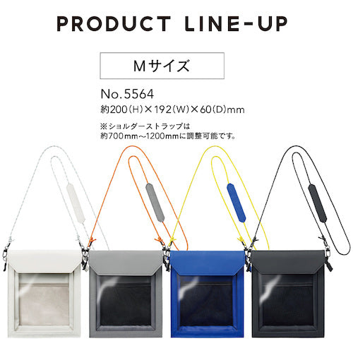 카탈로그 품번:5564-BK 특징:●“조금 거기까지”의 외출에 최적인 미니 가방입니다. ●심재들이로 형 무너지기 어렵고, 개구부는 면 패스너 부착의 플랩과 소품의 탈락을 막는 패스너가 붙어 있어, 사용의 용이성과 휴대성을 겸비하고 있습니다. ● 또한 길이 조정이 가능한 숄더 스트랩이 부속되어 있어 떼어내는 것으로 가방 인백으로서도 사용할 수 있습니다. ●투명 포켓으로 내용을 한눈에 알 수 있어, 스마트폰을 안에 넣은 채로 화면 조작도 가능합니다. ● 숄더 스트랩은 약 700mm ~ 1200mm로 조정 가능합니다. 사양:●색:흑●폭(mm):192●안길이(mm):60●높이(mm):200●내하중(kg):약 1.7●숄더 스트랩 길이(mm):700~1200●내하중 약 1.7kg 주의:●숄더 스트랩을 목이나 팔 등 신체에 감아 ●본제품에 수납한 것의 파손이나 고장 등, 당사는 일절 그 책임을 지지 않습니다.