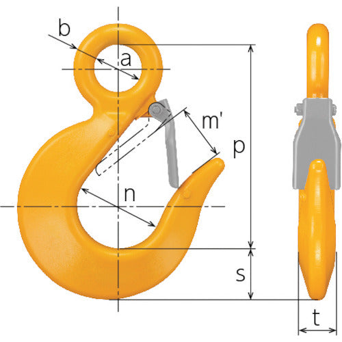 카탈로그 품번:HTL4130 특징:●키토 체인 슬링 100용의 슬링 훅입니다. 용도: ●안전 레버 부착, 매달아 짐측용 훅. 사양:●기본 사용 하중(t):5.2●체인 선경(mm):13●적합 체인 선경(mm):13●치수(mm)a:38.0●치수(mm)b:21.5●치수(mm)m:46●치수(mm)n:63.0●치수(mm)p:171●치수(mm)s:47. 무게(t):5.2●슬링 훅 치수(mm)n:63●슬링 훅 치수(mm)a:38●슬링 훅 치수(mm)s:47.5●치수(mm)m':46 재질/마무리: