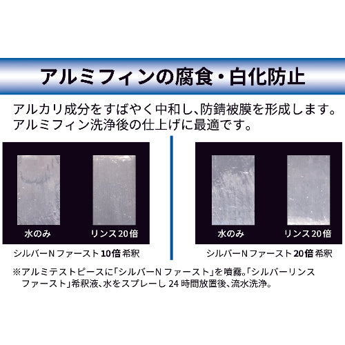 카탈로그 품번 : NB59 특징 : ● 작업 시간을 대폭 단축하여 알루미늄 핀을 보호합니다. ●부식・백화 방지, 제균 효과가 있습니다. 용도 : ● 세척 후 알루미늄 핀의 중화 및 마무리. 사양:●용량(ml):4854.4●색:무색투명●타입:약산성 ●희석배율:10~20●세로(mm):120●가로(mm):210●용량(kg):5●용량(g):5000●용량(L):4.9 ●제균 효과 재질/마무리: ●주성분:
