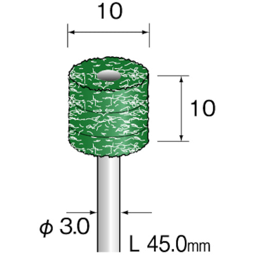 카탈로그 품번:EA5013 특징: ●가공 소재에의 근처가 소프트로 친숙해져, 평면, 곡면을 불문하고 작업을 할 수 있습니다. ●연삭시의 발열이 적고 피삭재의 연삭 탄이 일어나지 않습니다. 사양: ● 입도 (#) : 320 적층 ● 외경 (mm) : 10 ● 폭 (mm) : 10 ● 축경 (mm) : 3.0 ● 축 길이 (mm) : 35 ● 최고 사용 회전수 (rpm) : 3000 ● 전체 길이 (mm) : 45.0 ● 선단 직경 (φ) : 구리