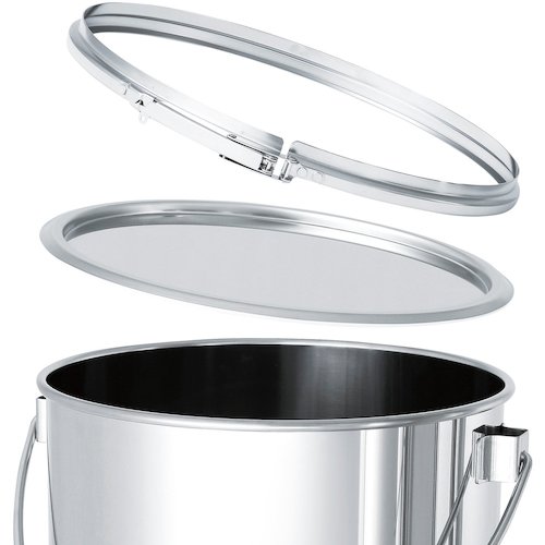 카탈로그 품번:CTL-39H 특징:●레버 밴드와 패킹으로 뚜껑을 고정하여 밀폐합니다. ●원터치식 레버 밴드로 간단하게 뚜껑의 착탈을 할 수 있어 세정도 용이합니다. ●밀폐식이므로 내용물의 비산을 방지해, 밖으로부터의 먼지등의 혼입을 막습니다. ●주로 제약・화장품 메이커님등에서 사용되고 있습니다. ●패킹은 식품 위생법 적합품의 실리콘 고무가 표준입니다. 용도: ● 액체・분체의 보관용으로. 사양:●용량(L):50 ●직경(mm):416 ●높이(mm):497 ●내경(mm):387 ●깊이(mm):480 ●뚜껑 타입:밀폐 뚜껑(밴드식) ●취수:있어 ●용기 본체… 아니. ●패킹【PQL】…실리콘 고무(식품 위생법 적합품) ●※565(150L) 이상의 사이즈는【PQB】가 됩니다. ●(뚜껑에 붙이는 타입) ●표면 처리: 내외면 버프 연마 ●사용 조건: 대기압(가감압 불가) ●용량:10L, 15L, 20L, 25L, 36L, 45L, 50L, 65L, 70L, 80L, 100L, 150L, 200L, 300L 위 : ● 용기 본체 · 뚜껑 · 손잡이 · 레버 밴드 : SUS304