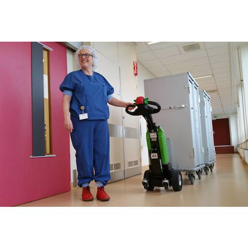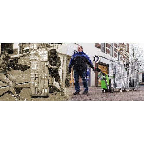카탈로그 품번:T1000ECN-A 특징: ●전동식의 훅 때문에, 자동으로 대상물(100mm까지)을 잡을 수 있습니다. ●최대 1000kg까지의 운반 작업을 전동 어시스트합니다. ●배터리 팩은 교환 가능하고 24시간의 오퍼레이션이 가능합니다. ● 세련된 컴팩트한 바디로 작은 회전이 있습니다. ● 견인뿐만 아니라 푸시 백으로 전방으로 눌러도 사용하실 수 있습니다. ●핸들부에는 에머젠시 스톱 버튼 탑재로, 작업자가 끼는 사고를 예방할 수 있습니다. ● 핸들은 3 단계로 높이 조정이 가능하고, 미사용시에는 접어 수납할 수 있습니다. ● 스로틀의 누름 상태로 스피드의 미세 조정이 가능합니다. ●핸들부의 버튼으로 최대 속도는 2단계의 조정이 가능합니다. ● 면허나 특별한 스킬은 불필요하고 누구나 쉽게 조작할 수 있습니다. 용도 : ● 공장 및 물류 센터에서 수하물의 반출입 작업에. ●대규모 쇼핑 센터나 소매점에서의 상품의 반출입 작업에. ● 공항에서 카트의 이동, 관리 등에. 사양:●길이(mm):1100●폭(mm):430●높이(mm):1232●핸들 높이(mm):924, 1040, 1121(3단계 조정 가능) ●휠 직경(mm):Φ250×80 ●최소 선회 반경(mm):635 ●탑재 배터리:DC 65 ●바퀴 폭(mm):358 ●최대 견인 질량(kg):1000 ●폴딩시 사이즈(mm/훅 없음):길이 650×폭 430×높이 770 ●에머젠시 스톱 버튼 첨부 ●100mm까지 클램프 가능 ●주행 속도:0~4km/h(2단계 조정 가능) ●충전 시간:6시간 ●주행 시간:7시간(만충전시) ●사용 온도:-10~40℃ ●방진 방수 성능:IP44(본체 부분), IP30(충전용 어댑터 부분)0K 대응 구 ●핸들 접을 때 높이(mm):770 ●훅 높이(mm):120~260(무단계 조정 가능) 주의: ●배터리 및 충전기는 별매입니다. ●노면 조건이나 견인물의 중량 등으로 주행 가능 시간은 다릅니다.