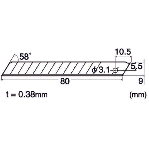 카탈로그 품번:BA5SS 특징:●녹에 강한 하이카본 스테인리스제입니다. ●녹에 강하기 때문에 물 주위에 편리합니다. 용도 : ● 물 회전 작업에. 사양:●날 두께(mm):0.38 ●날 길이(mm):80 ●적합 본체:A형 커터 재질/마무리:●하이카본 스테인리스