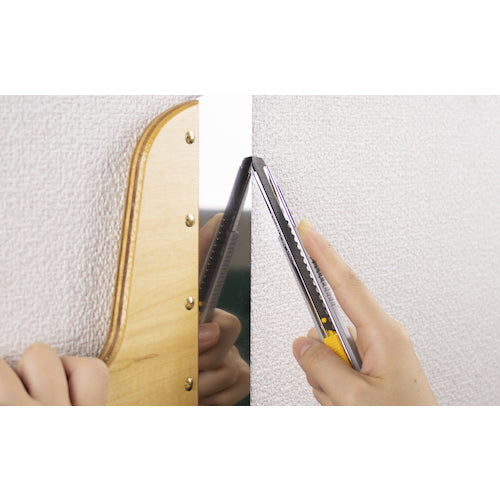 카탈로그 품번:241B 특징: ●크로스, 종이 등을 자르기 위한 프로용 커터입니다. ●날을 21회 사용할 수 있어 소비 비용이 유익합니다. ●초예각의 연마로 조인트도 커트가 눈에 띄지 않습니다. ● 원터치로 칼날을 고정 할 수있는 자동 잠금 타입입니다. ● 미끄럼 방지 고무 부착입니다. 용도 : ● 크로스, 배경 화면 등. 사양:●전체 길이(mm):160.7●날 두께(mm):0.38●날 길이(mm):109.5●적합 교체 날:특전 흑날 롱038 무도금