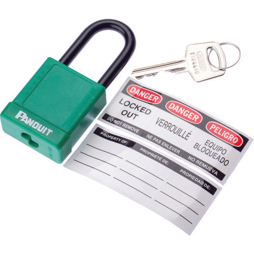 카탈로그 품번:PSL-8GR 특징:●완전히 잠글 때까지 열쇠는 빠지지 않습니다. ●안전성이 높은 더블 락으로 6핀 실린더입니다. ● 알루미늄 바디와 걸쇠에 비전도성 폴리에틸렌으로 보호되어 전기적 장애에 대응하고 있습니다. 사양:●색:녹색●조 내경(mm):19.1●A(mm):19.1●치수(mm)B:38.1●샤클 지름:φ6.6mm 재질/마무리:●본체:알루미늄●샤클:스틸