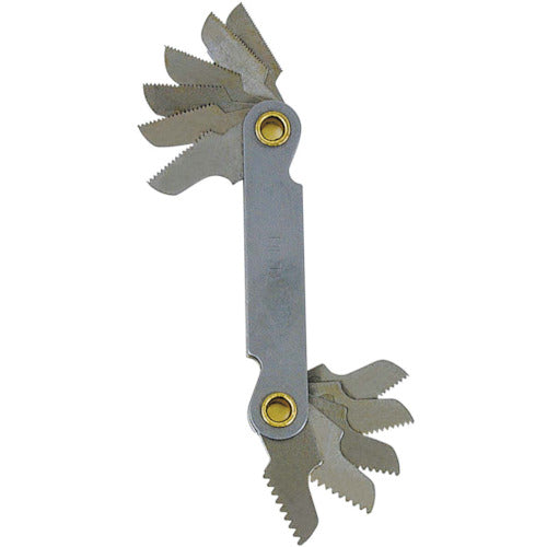 카탈로그 품번:22190 특징:●12종류의 피치 게이지를 측정할 수 있습니다. 용도 : ● 피치 사이즈 (mm 전용)를 측정합니다. 사양: ● 물집 팩 포함
