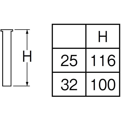 카탈로그 품번:PH70-64-25 사양:●파이프 외경(mm):25●H(mm):116●호칭 직경:25